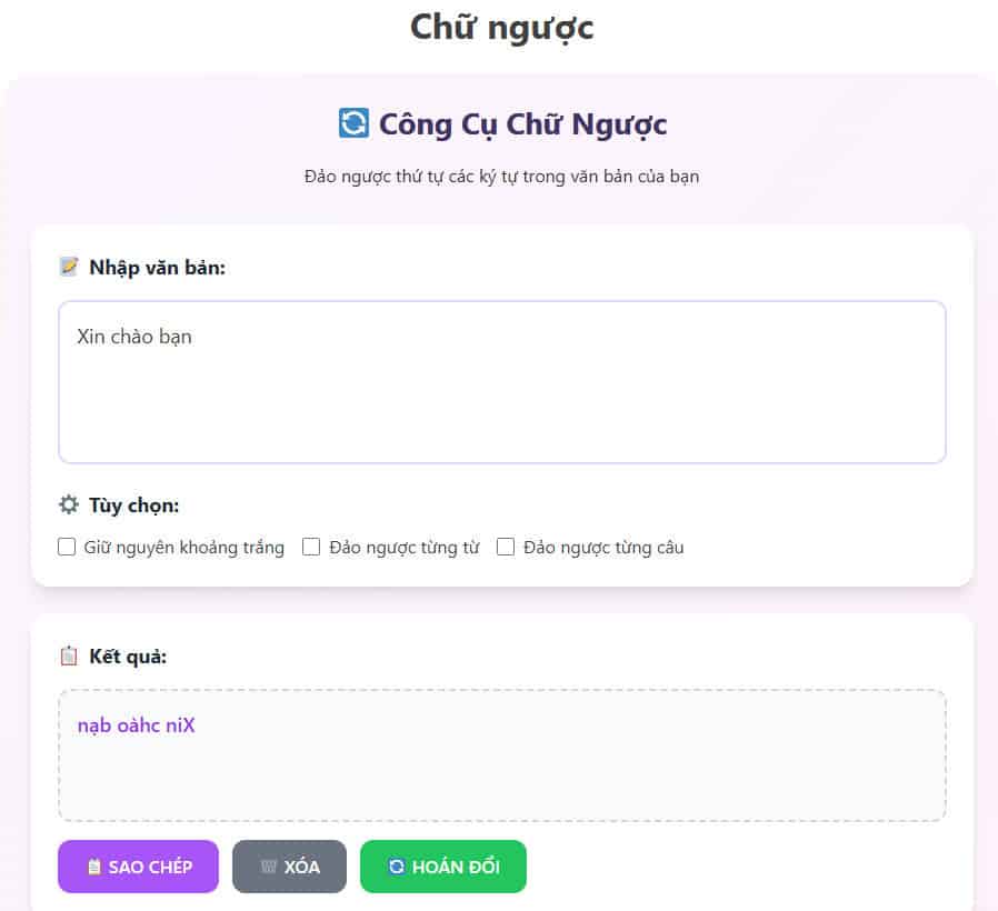 - Reverse (đảo thứ tự ký tự): “Kí Tự 360” → “063 ựT íK”.