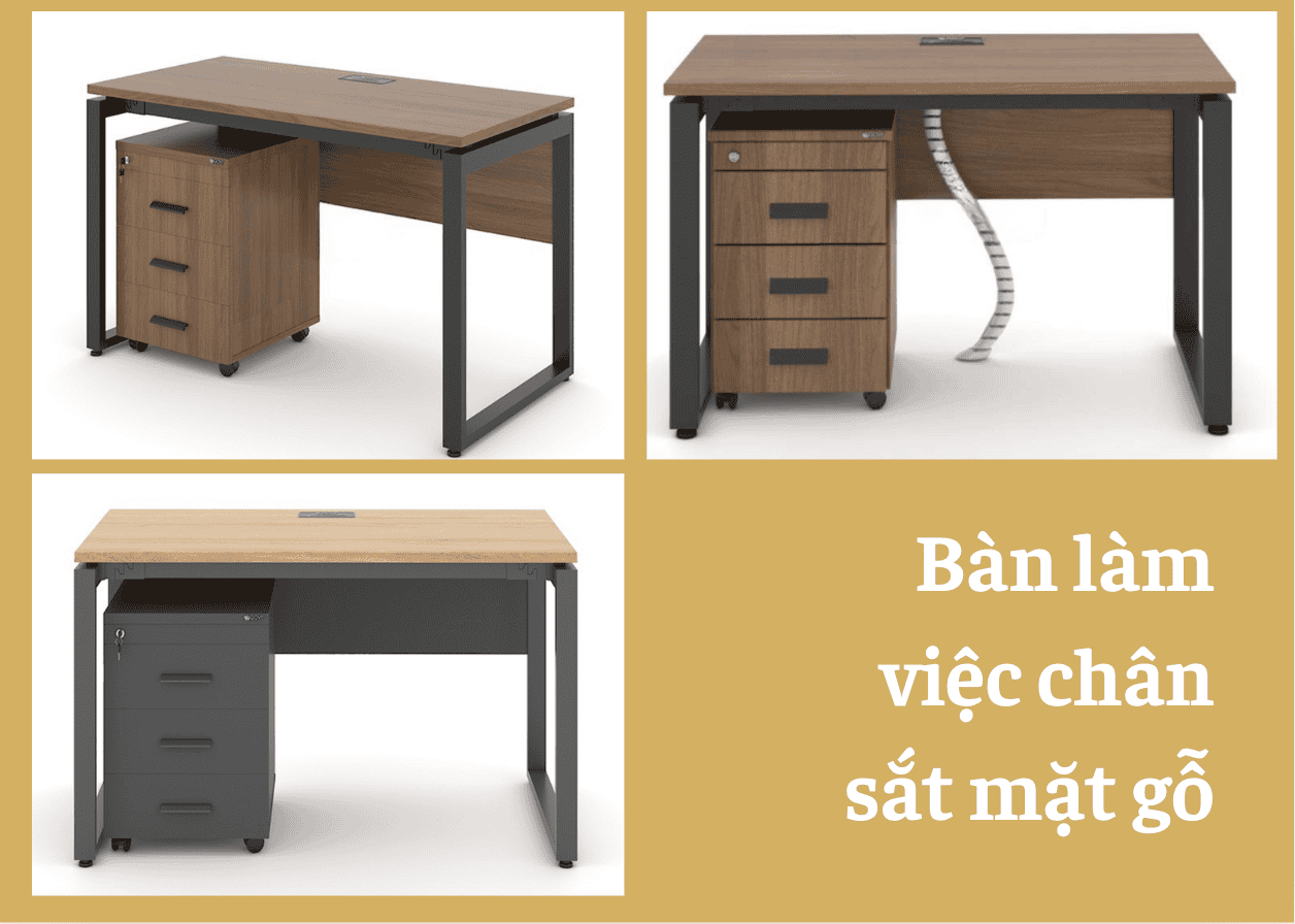 Sự kết hợp giữa khung sắt sơn tĩnh điện và mặt gỗ MDF hoặc MFC phủ melamine giúp chiếc bàn này vừa chắc chắn, vừa hiện đại. Kiểu dáng đơn giản nhưng mạnh mẽ, phù hợp với hầu hết các phong cách decor – từ văn phòng startup năng động đến góc làm việc tại nhà.